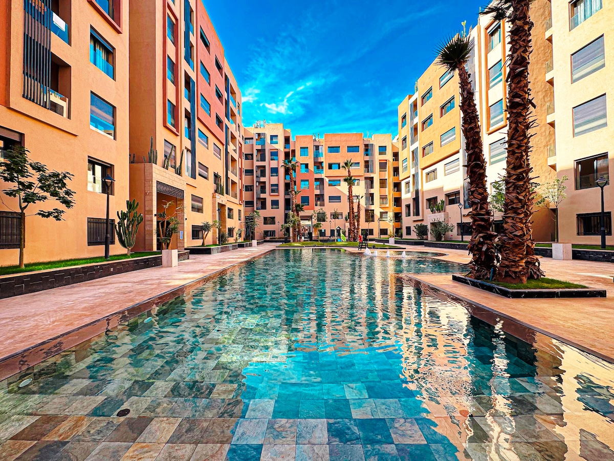 Bienvenue dans votre cocon chic et moderne à Marrakech 🇲🇦 Profitez d’un séjour calme, sécurisé et confortable, à seulement 7 minutes de Guéliz, 5 minutes de M Avenue et 10 minutes de la place Jemaa El-Fna et 6 minutes de la Gare ONCF. Idéal pour les voyageurs recherchant le confort, la propreté et la tranquillité, cet espace vous offre une expérience authentique entre style marocain et modernité 🌴 Convient aux familles, voyageurs d’affaires et voyageurs solo .