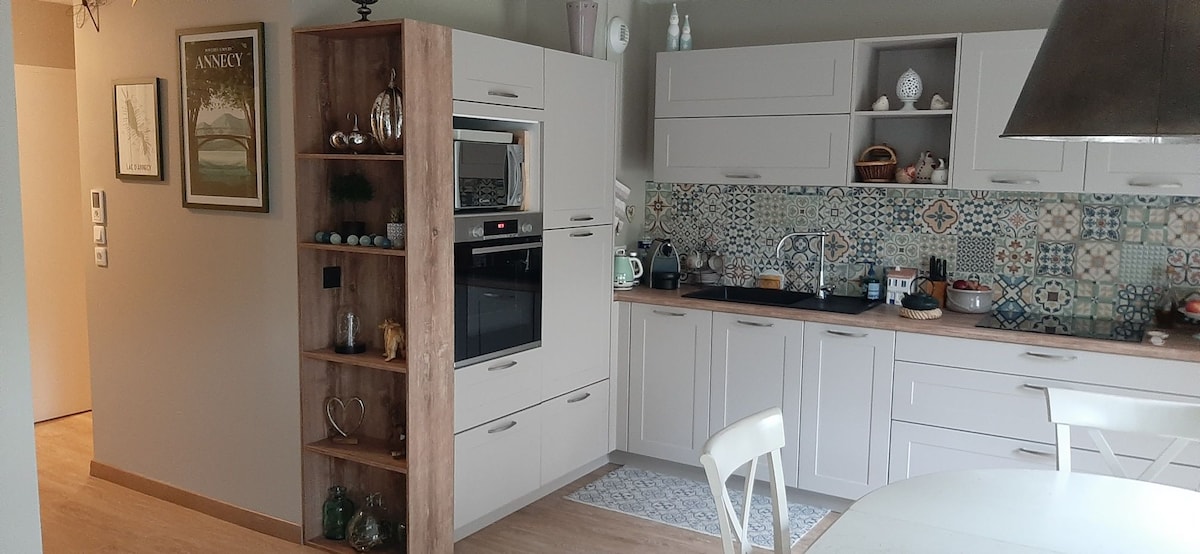 Відпочиньте в цьому тихому та елегантному помешканні площею 38 кв. м на рівні саду. Тераса площею 30 кв. м і сад із барбекю Мабуть, нова італійська пральна машина для душу надаються банні рушники та простирадла. Повністю обладнана кухня, духовка, мікрохвильова піч, холодильник із морозильною камерою, кавомашина Senseo, чайник, тостер 6 хвилин на автобусі від залізничного вокзалу 15 хвилин їзди до озера 5 хвилин від північного виїзду з автостради A41 Аннесі Гіпермаркет Carrefour навпроти Гараж закритий у підвалі з ліфтом.