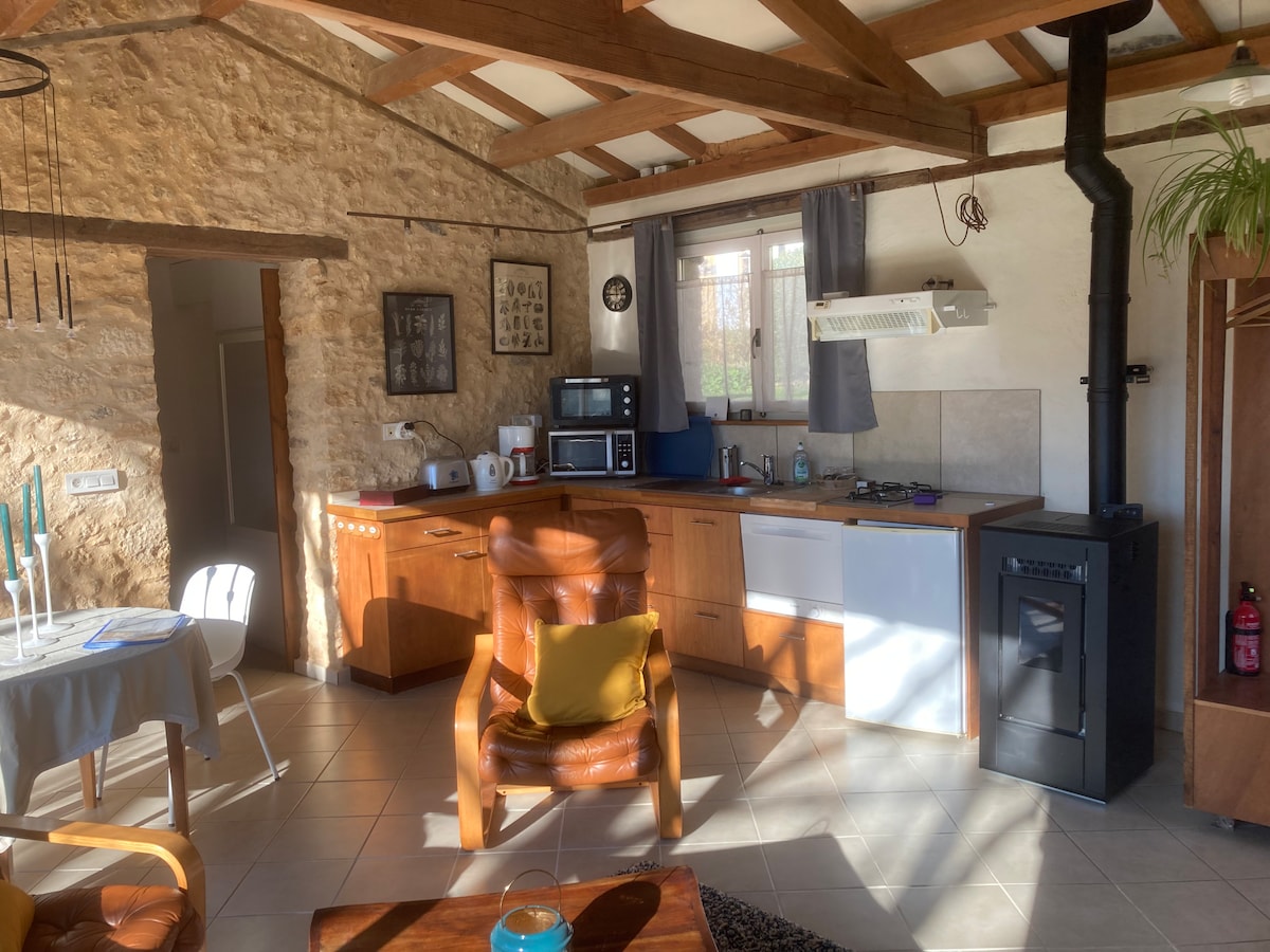 Дуже чарівний котедж площею 120 м2, розташований у Перигорді, між Бержераком і Перігё. Гості можуть відпочити біля басейну на краю басейну з чудовим видом і тихим районом. - Проживання - Кухонна сторона ви знайдете все необхідне. 2 спальні 1 ванна кімната з душем та туалетом Телевізійна зона А веранда зі стільцями для столів... Куточок для читання - EXTERIOR- Приватна автостоянка Кам 'яні садові меблі Басейн для барбекю бізнес, близький до помешкання
