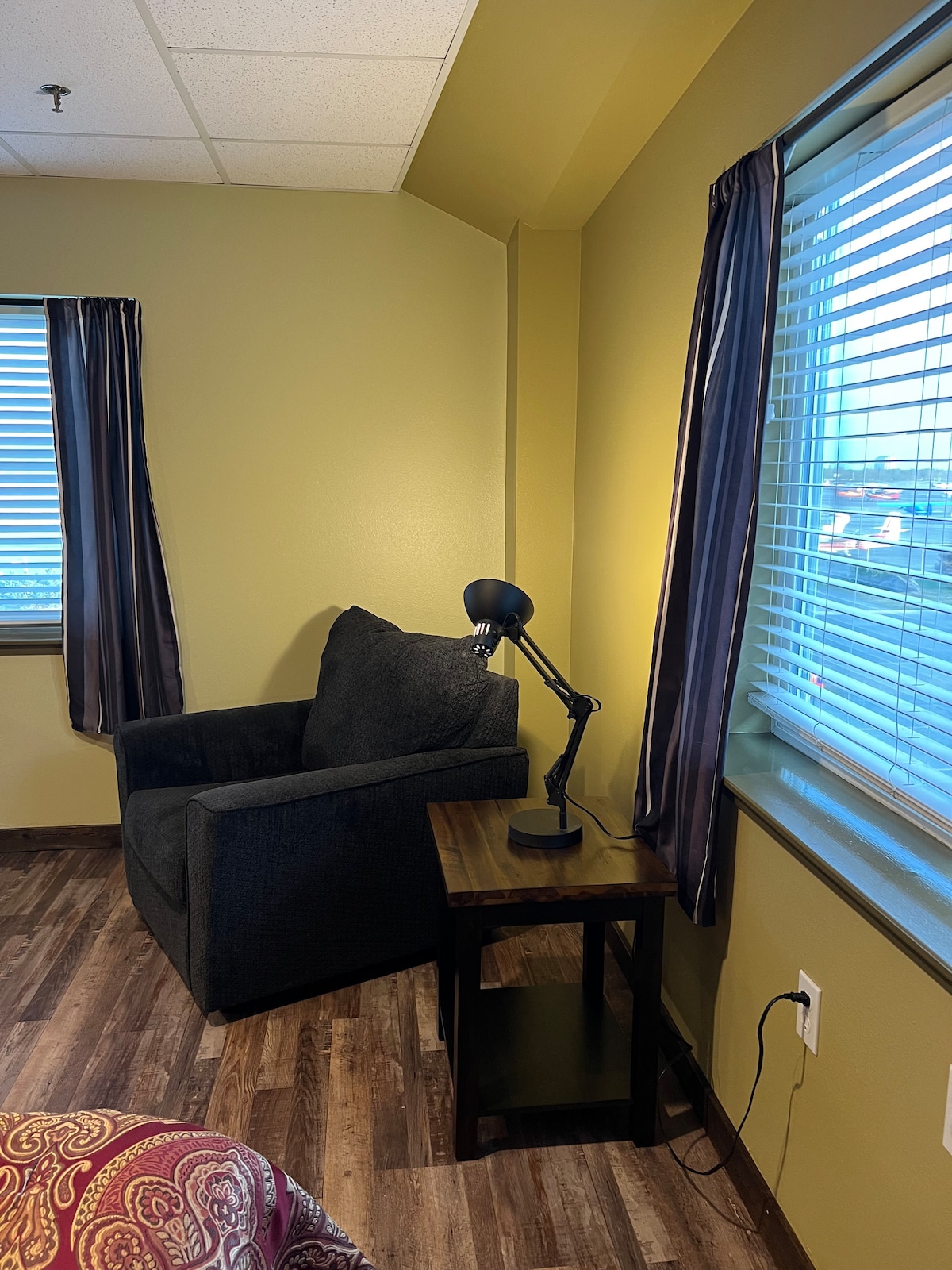 Ця окрема кімната розташована на верхньому поверсі 20-кімнатного хостелу, розташованого в центрі міста, і включає зручне ліжко розміру Queen size, робочий стіл зі смарт-телевізором, холодильник, мікрохвильову піч та кавову станцію. 10 хвилин від аеропорту та центру міста, це місце має вид на центр міста з кількома ресторанами та магазинами в декількох хвилинах ходьби. Ми раді запропонувати це спокійне та затишне помешкання для наших гостей
