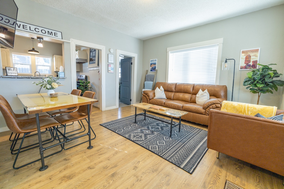 Команда прибиральників із п’★ятьма зірками, які пройшли навчання з дезінфекції та санітарії ★4 квартали до центру міста ★Коротка поїздка до Саду богів, Пайкс-Пік, USAFA ★До коледжу Колорадо можна дістатися пішки ★4 квартали до місцевої кави, Wild Goose ★Просторий задній двір із КАМІНОМ і ГРИЛЕМ ★Неймовірно зручні ліжка! ★Повністю обладнана кухня ★ДІЛОВІ ПОДОРОЖІ: ШВИДКИЙ WI-FI ТА ВХІД БЕЗ КЛЮЧА ★40-дюймовий Apple TV у вітальні з прямим телевізором, Sling TV, Hulu та Netflix ★Сучасний сонячний простір Підходить для★ сімей ★Пральна/сушильна машина ★Безкоштовна содова Колорадо