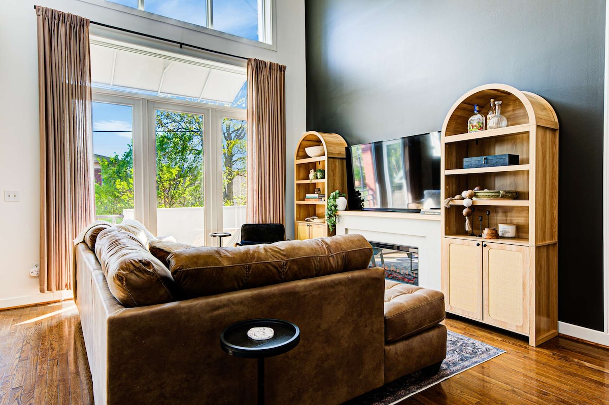 Відчуйте найкращі сторони Луїсвіля в цьому стильному помешканні з 1 спальнею та 1 ванною кімнатою в центрі міста! Це ідеальне місце для пар, сімей або друзів. Тут є затишне ліжко розміру King size, 2 розкладні ліжка, повністю обладнана кухня та світла вітальня. Насолоджуйтеся ранковою кавою або вечірніми напоями на приватному балконі, прогулюйтеся до сусідніх ресторанів і барів, а потім відпочивайте біля басейну або гідромасажної ванни, грайте в гольф на тренажері або розслабляйтеся за грою в пул. Ваша стартова площадка для пригод або стильний затишний куточок для відпочинку!