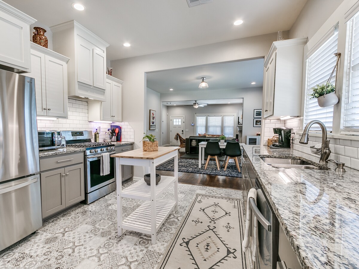 Ласкаво просимо до Everyday Haven - помешкання, спроектоване з урахуванням сімей. Цей чистий відкритий простір, розташований у закритому районі неподалік від парків, продуктових магазинів і ресторанів, пропонує ідеальне поєднання комфорту та зручності. Розташоване менш ніж за 15 хвилин від автомагістралі I-35 та автомагістралі та в 30 хвилинах їзди від Оклахоми, ви всього в декількох хвилинах їзди від Бріктауна, ярмаркового майданчика та багато іншого. Незалежно від того, чи для відпочинку на вихідних, чи для тривалого перебування, Everyday Haven пропонує гнучкість і спокій, необхідні вашій сім 'ї, щоб почуватися як удома.