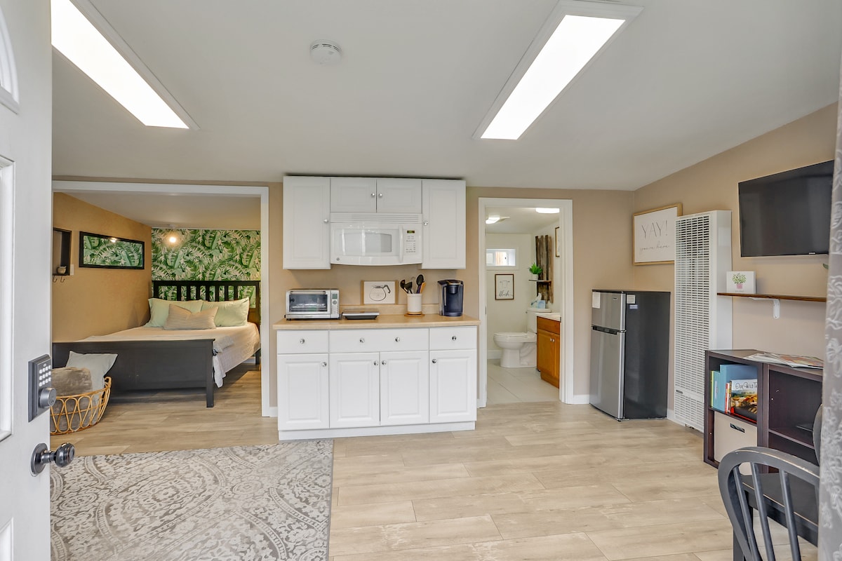Vacationers, Extended Family, Work Travelers with Fast Internet! ALL the Comforts & Gourmet Kitchen!! Optional 2nd bed set-up fee collected after booking. I'll message options. Fully stocked gourmet kitchen, full-size appliances; small ones too! Full bathroom: large walk-in shower with 2 shower head fixtures! Bidet & every amenity. Patio, water fountain, Adirondack chairs, bistro table, outdoor shower-enjoy privately. Appointed to provide maximum functionality and relaxation!