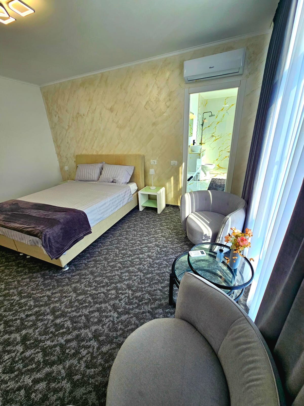 Apartament modern cu 2 camere, renovat recent, complet mobilat și utilat. Dormitor cu balcon și oglindă elegantă pe tavan, baie cu duș walk-in și oglindă premium, living cu canapea extensibilă, bucătărie practică. Dotat cu aer condiționat, Wi-Fi rapid, 2 televizoare, parcare proprie și yală smart. Locație excelentă: aproape de Piața Sârbilor, magazine și transport.