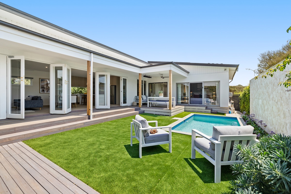 Blending modern, French & farmhouse influences, our tucked-away slice of heaven captures the best of the wine region. With remnant forest surrounds, a solar-heated pool & proximity to Merricks beach (6 mins), everything is here to help you unwind. A barbecue, pizza oven, outdoor sink & two deck seating areas will draw you outside to enjoy balmy evenings. Nearby is Merricks Store and plenty of great wineries.