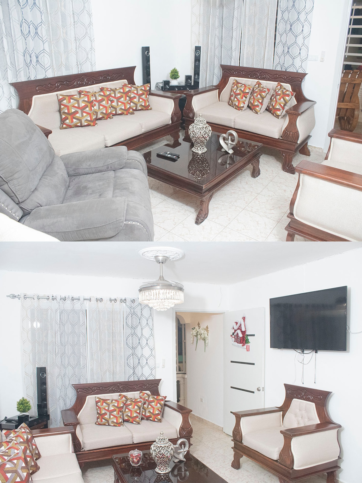 Relájate con toda la familia en este tranquilo y seguro residencial para quedarte. A 5 minutos de centros comerciales, en zona clásica de cotuí, con marquesina doble, Portón Eléctrico, herramientas de ejercitar, 2 balcones, 3 aire acondicionados uno en cada habitación (uno por hab.), abanicos de techos, pedestal (comedor, habitaciones), terraza, area de lavado, patio para recreación, camara vigilancia 24/7, wifi, sistema agua caliente para baños. HAY PISCINA, PERO ES UN SERVICIO PAGADO ADICIONAL