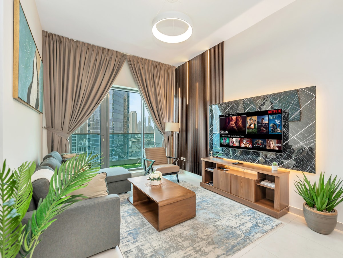 Відкрийте для себе мою художню та розкішну квартиру в центрі Дубая, де художня елегантність і культові краєвиди Бурдж-Халіфа поєднуються, щоб створити незабутні враження. Кондомініум розташований у центральному місці поблизу всіх популярних об 'єктів. Ця ретельно оформлена квартира пропонує вхідне сидіння на бульварі та Бурдж, одній з найвідоміших пам 'яток світу. Якщо ви насолоджуєтеся стильним інтер 'єром, ви знайдете натхнення в кожному кутку цього унікального відпочинку. Місцеві поради включено!