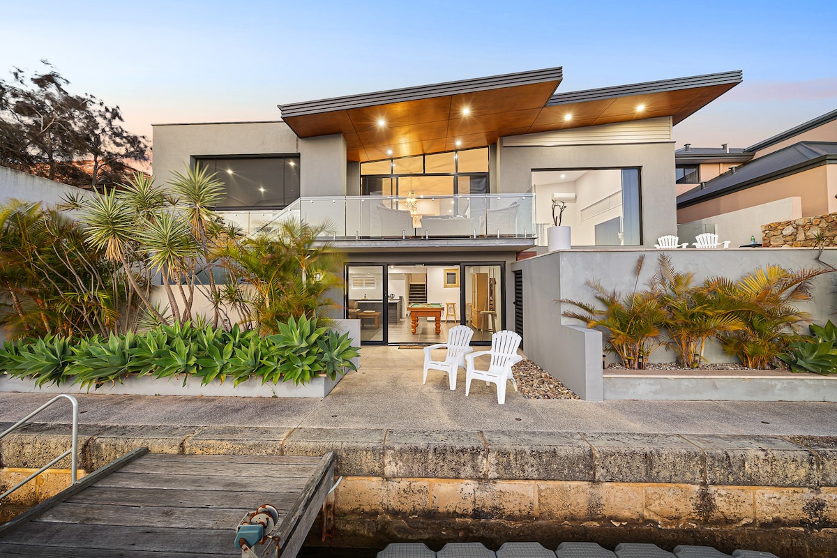 ЖИВІТЬ, СМІЙТЕСЯ і РОЗСЛАБТЕСЯ в БУДИНКУ для відпочинку! Цей будинок на каналі Мандура - сучасний і зі смаком оформлений. У цьому будинку ви відчуєте себе королем, що живе в цьому будинку! Цей престижний двоповерховий будинок із 6 спальнями вміщує до 14 осіб і є ідеальним місцем для возз 'єднання сімей, вихідних для дівчат, відпочинку пар або зустрічі друзів. У цьому чудовому будинку для відпочинку ви всі можете вгадати й чудово провести час разом.
