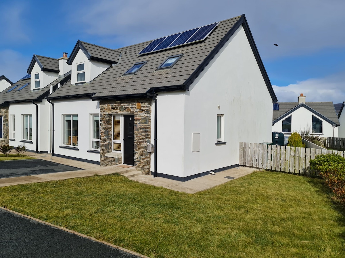 «Приморське, розкішне сучасне помешкання для відпочинку на Дикому атлантичному шляху. Супершвидкий широкосмуговий зв 'язок Fibre, щоб забезпечити віддалену роботу з 2 робочими станціями. Пройдіться в 5 хвилинах ходьби від жвавого села Данфанагі. Прогуляйтеся до приголомшливого пляжу, щоб прогулятися, і поверніться до духовки The Rusty, щоб насолодитися дивовижною піцою. Відвідайте місцеву школу серфінгу. Завершіть його пинтою та живою музикою в пабі Patsy Dans.« Мінімум 5 ночей для будинку в липні та серпні.
