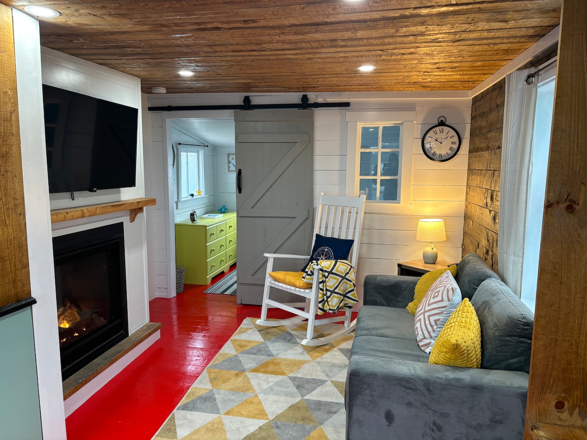 This unique tiny home is located in the heart of a working fishing village in Champneys West! This little gem has its own outdoor dock and is located right on the Fox Island trail! Because it is right on the water we have a propane Cinderella incinerator toilet and a propane on demand hot water system. These colourful stages are a highly sought location and photographed daily by visitors who pass by. A beautiful place to relax by the indoor propane fireplace or enjoy a beverage on the dock!