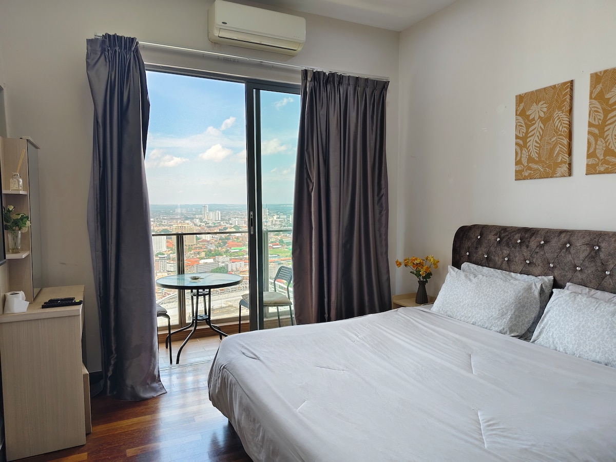Уважно прочитайте перед бронюванням =) Це квартира з 1 спальнею, розташована в центрі міста Малакка! ✤ БЕЗКОШТОВНИЙ високошвидкісний Wi-Fi ✤ Смарт-телевізор (NETFLIX+Youtube) Він розташований на ВИСОКОМУ поверсі, що наглядає за містом. **Очікуйте на шум дороги, коли вона виходить на місто. Він розташований безпосередньо через дорогу від торгових центрів, їдалень і розважальних місць. Прогуляйтеся до популярних туристичних місць, таких як вулиця Джонкер, форт А 'Фамоса, пагорб і церква Святого Павла, Stadthuys і Jonker Street за 10-15 хвилин.