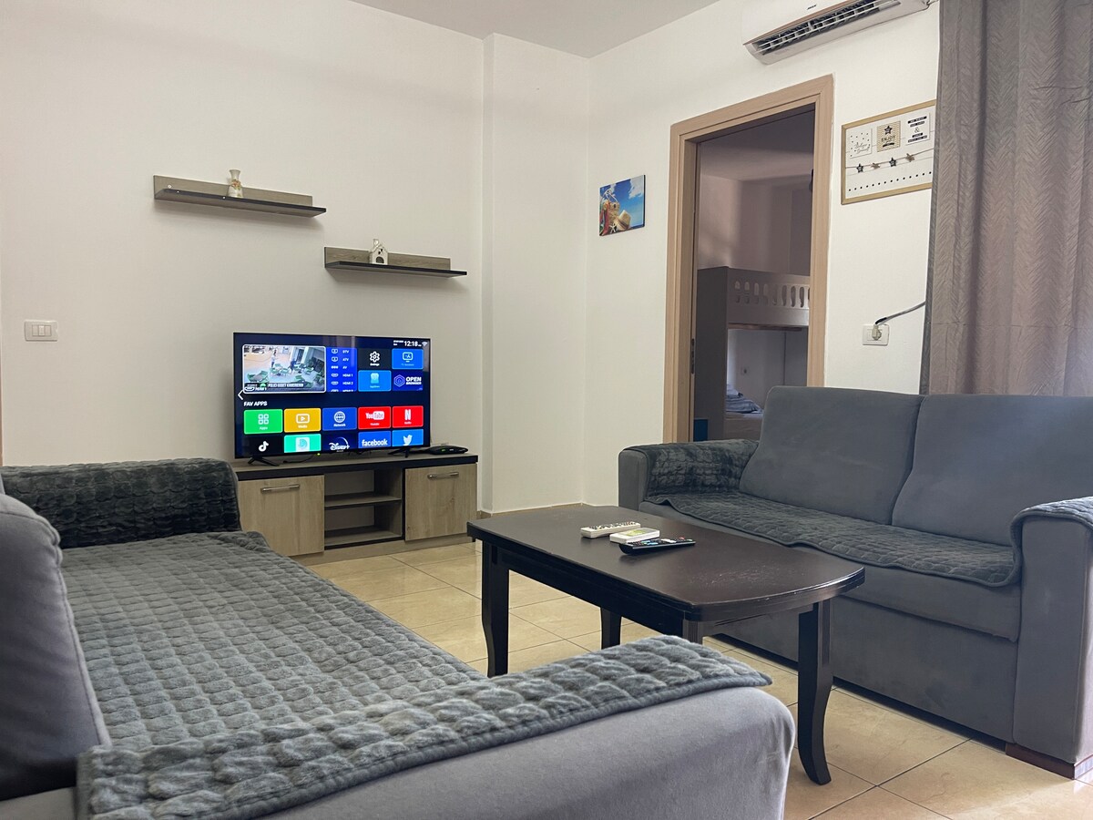 🌞 Step into your sun-kissed escape — a stylish 🌊 sea-view apartment just steps from the sand, where the sound of waves greets you each morning and 🌇 golden sunsets pour into your balcony each night. 💫 Whether you're dreaming of a peaceful getaway, a 💑 romantic retreat, or a 💻 remote work haven, this beachfront stay offers everything you need to relax, recharge, and feel at home in Durrës.