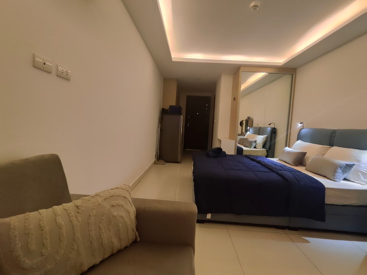 Приїжджайте всією сім 'єю до цього чудового помешкання з достатньою кількістю простору та дій.Унизу є Seven Eleven And Tops Daily, є багато ресторанів і кафе, в 500 метрах від овочевого ринку, в одному кілометрі від пляжу Джомтьєн, в одному кілометрі від великого оптового ринку, район має дуже великий вид на басейн і дві величезні водні гірки, мілкий ставок, дитячий басейн.Також на двох поверхах є тренажерний зал і великогабаритна сауна.У кімнаті є барабанна пральна машина, а проектор може дивитися відео.Район ідеально підходить для сімейного відпочинку.Відпочиньте всією сім 'єю в цьому спокійному помешканні.