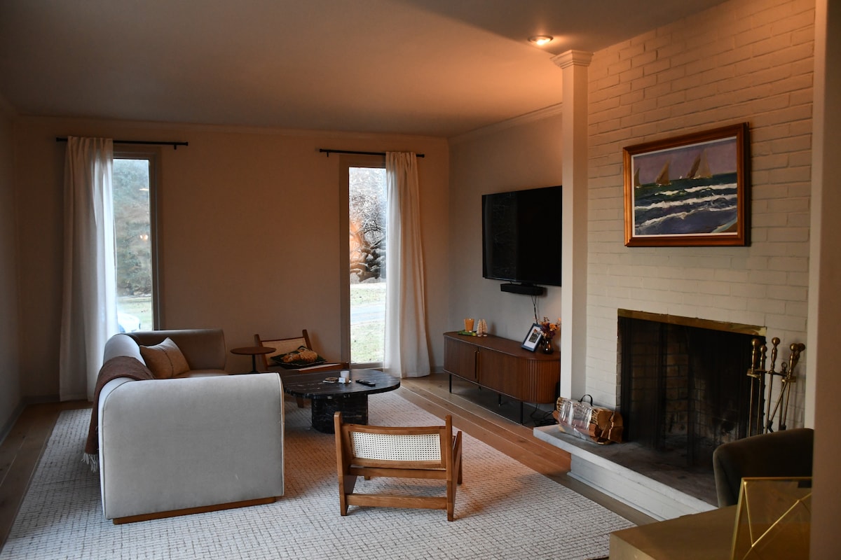 Ласкаво просимо до Hudson Valley Hideaway — стильного, зручного для сімейного відпочинку помешкання з 4 спальнями та 2 ванними кімнатами, розташованого на розі Бікон-стріт, всього за 1,5 милі від центру міста та річки Гудзон. Насолоджуйтеся шикарною вітальнею з 85-дюймовим телевізором, повністю обладнаною кухнею, їдальнею, Wi-Fi 1 Гб, робочим місцем та кондиціонером. Спокійно спіть на 1 ліжку розміру King size, 2 ліжках розміру Queen size та 1 ліжку розміру Twin XL. Зовні розслабтеся в огородженому оазисі з басейном, гіркою, гідромасажною ванною, грилем і місцем для багаття. Сучасний комфорт поєднується з затишним шармом долини Гудзона. СПЕЦІАЛЬНА ПРОПОЗИЦІЯ: ЗНИЖКА 20% на всі зимові помешкання!