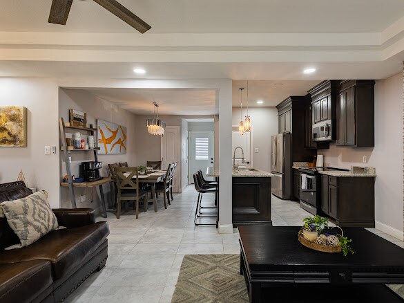 Цей двоповерховий просторий сучасний будинок розташований в центрі міста і, найголовніше, призначений для спокійного перебування наших гостей. Помешкання ідеально підходить для сімей, пар або друзів, які хочуть зупинитися в чистому, просторому та комфортному середовищі. Незалежно від мети вашої подорожі, ви можете насолоджуватися приготуванням їжі на приватному задньому дворі або провести вечір кіно та пограти в настільні ігри в просторій вітальні з високими стелями.