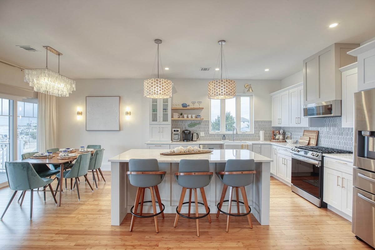 This NEW fully stocked coastal home is 2 miles from Long Beach Island with no direct neighbors! The perfect location offers close access to beaches, restaurants, and wedding venues! Professionally cleaned & maintained. Only used as Airbnb. 2 restaurants/bars within walking distance. Large driveway Distances to venues: (miles) Mallard Island Yacht Club: 0.5 Bonnet Island Estate: 2.5 Hotel LBI: 3.0 The Mainland: 3.3 Brant Beach Yacht Club: 5.6 Sea Shell Resort: 10 Parkers Garage: 10 STAC: 4.3