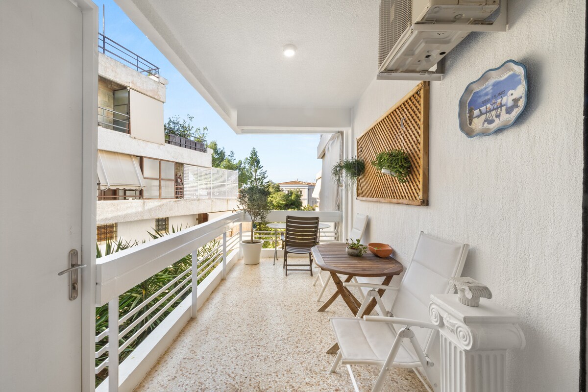 Він розташований у Кавурі, всього в 20 км на південь від центру Афін і всього в 4 хвилинах ходьби від найближчого пляжу. Це помешкання ідеально підходить для тих, хто шукає комфортне та універсальне перебування. Нещодавно повністю відремонтований, представлений на рівні 40 кв. м, на першому поверсі, з великим приватним балконом площею 16 м ² Приховане освітлення прикрашає стелю вітальні та вбудовані меблі зі скляними полицями, а всі зони облицьовані дерев 'яною підлогою.