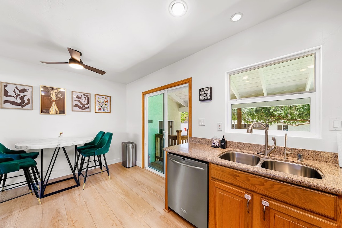 This is your perfect Guest House with a salt & heated pool + hot tub. Located in a super quiet & very safe neighborhood in beautiful San Diego, 15 minutes drive to the beaches, downtown, La Jolla, Zoo, stadiums, Sea World, Convention Center + more. Hike up Cowell Mountain next door at Mission Trails Park or around Lake Murray. Smart TV, wifi, two zone AC, full kitchen, W/D combo, top quality finishes & furniture. Everything you need for memorable vacation! No smoking or vaping on the property.