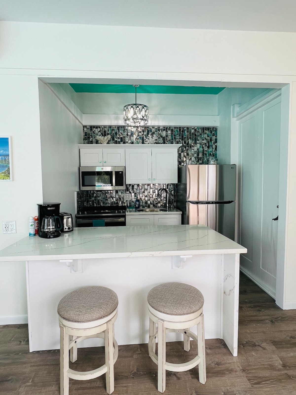 Чудове кондо набережної, на чудовому острові Сент-Томас, Американські Віргінські Острови, з видом на Червоний Хук та незаселені острови. Нещодавно було відремонтовано всі 32 кондомини станом на 2020 рік. Тепер оновлення завершено на всіх агрегатах, і воно включає в себе новий екстер 'єр, нові вікна, двері, скляні розсувні двері за всіма будівельними нормами. Усередині кондоминиуму нещодавні оновлення включають нову кухню, нову плиту, нові стельові вентилятори, нову ванну кімнату, нові меблі. Кондиціонер з розділеним рівнем 24k працює чудово, а насоси - холодно.