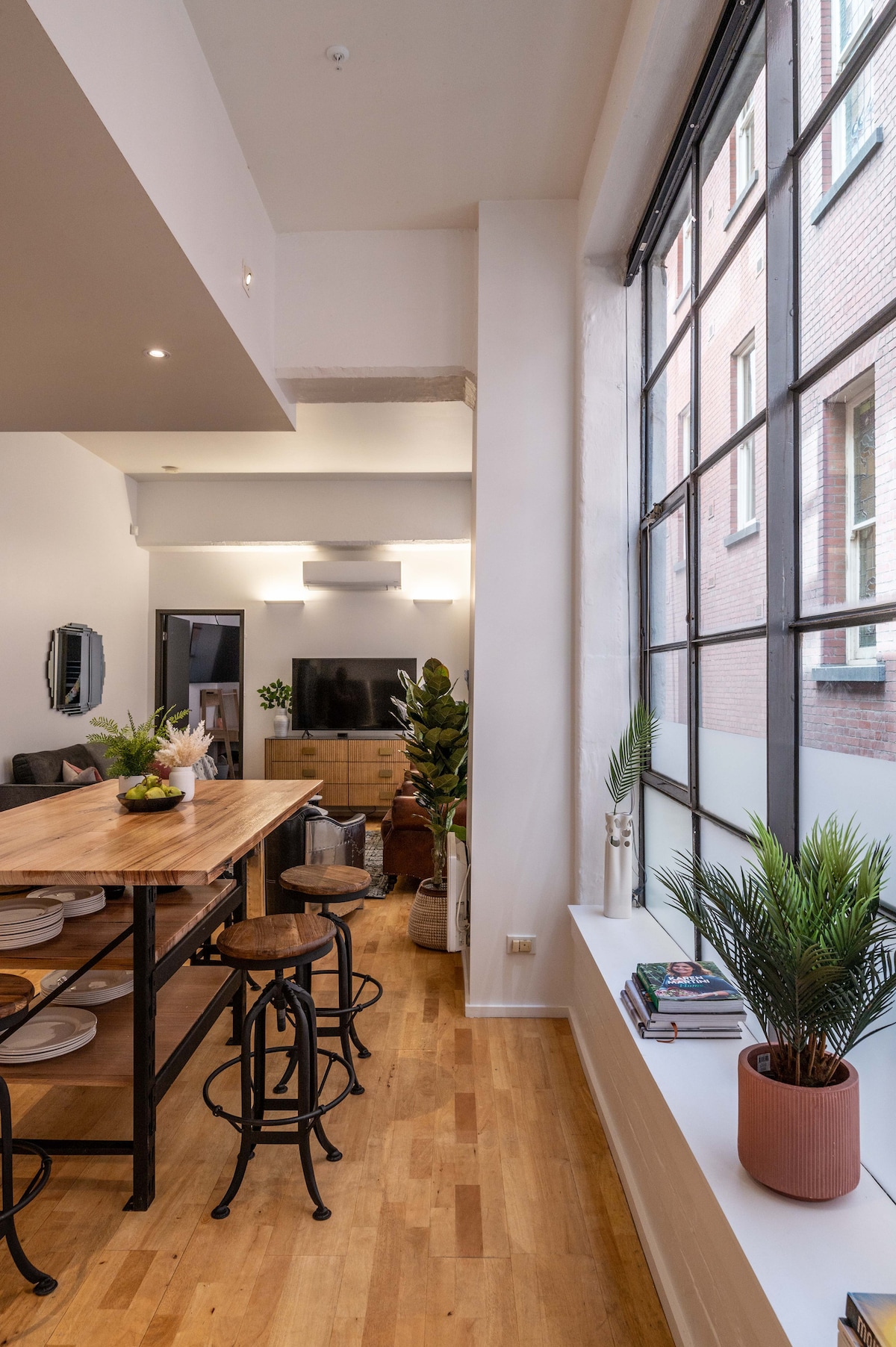 Ця переобладнана стайня була майстерно перетворена на чарівне дворівневе помешкання. Це справжня перлина, наповнена унікальними деталями, вінтажним освітленням, місцевим мистецтвом і шаровимисть особистості. Усього за декілька хвилин пішки до жвавих вулиць Гертруд-стріт, Сміт-стріт і Брансвік-стріт, де розташовані найкращі бари, заклади харчування та культурні об’єкти Мельбурна. Ринок Rose St Market, стадіон MCG, виставкові сади та тенісний центр розташовані на відстані короткої прогулянки. Це помешкання, розташоване на околиці центрального ділового району, поєднує в собі історію, стиль і неперевершену зручність.