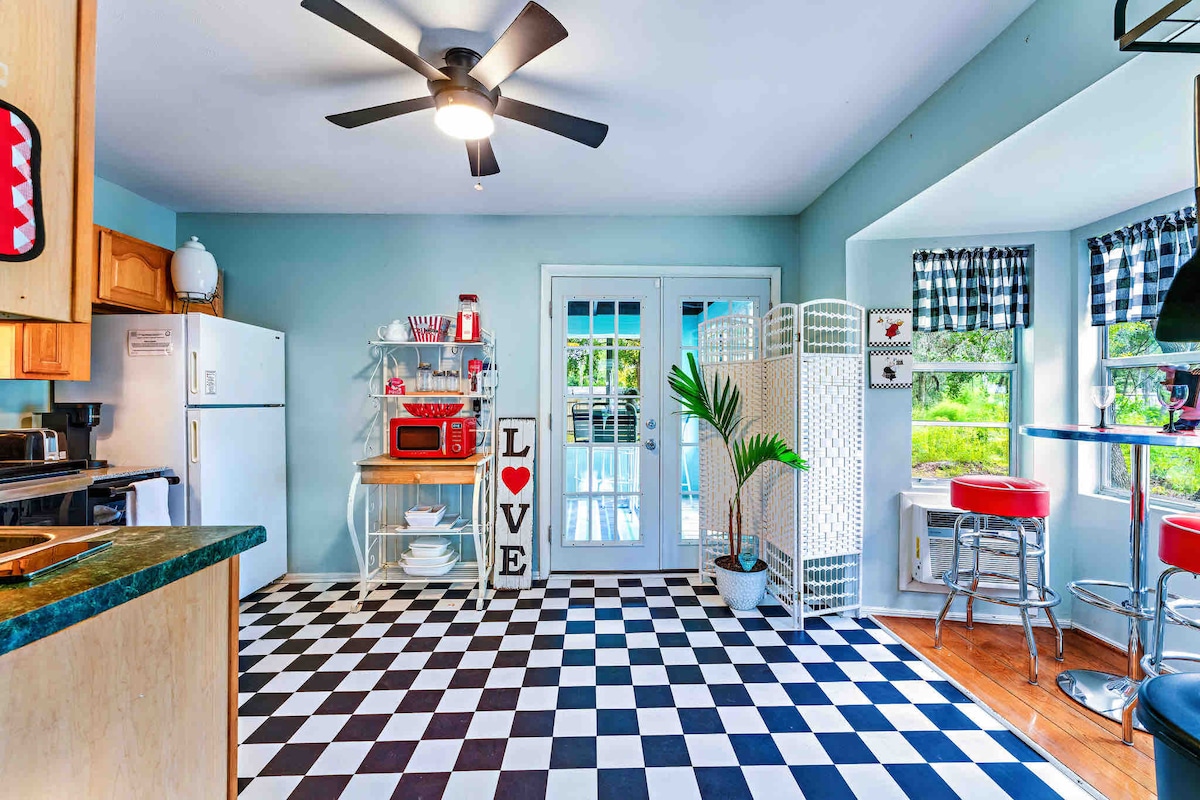Чарівний котедж у Апалачіколі. Коротка відстань до історичного центру міста. Язик і гай кипарисові стіни та стелі. Красиво оформлений, Wi-Fi, звукова система та пральня. Чудовий передній ганок для відпочинку. Підходить для собак із депозитом у розмірі 95 дол. США, що не підлягає поверненню (за кожну домашню тварину). Депозит за домашніх тварин можна залишити на кухонній стійці під час виїзду. Ми щойно встановили абсолютно нове ліжко розміру King size і Alexa для вашого музичного задоволення