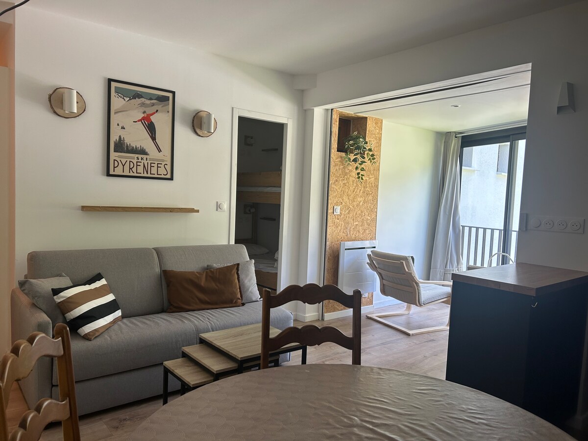 Appart de 39 m² - vue et situé au pied des pistes commerces, restaurants, remontées mécaniques, sentiers pédestres. Résidence "Les Isards" au 6ème étage avec ascenseur, exposé sud ouest. Idéal famille avec enfants. 4-6 couchages (canapé lit en 140 neuf - lit en 140 et lits superposés en 0.80) équipés de protection matelas - couettes - et oreillers (linge de lit non fourni)-cuisine équipée (linge de cuisine non fourni)- salle de bain (linge de toilette non fourni)- wc séparé - patio. NON FUMEUR