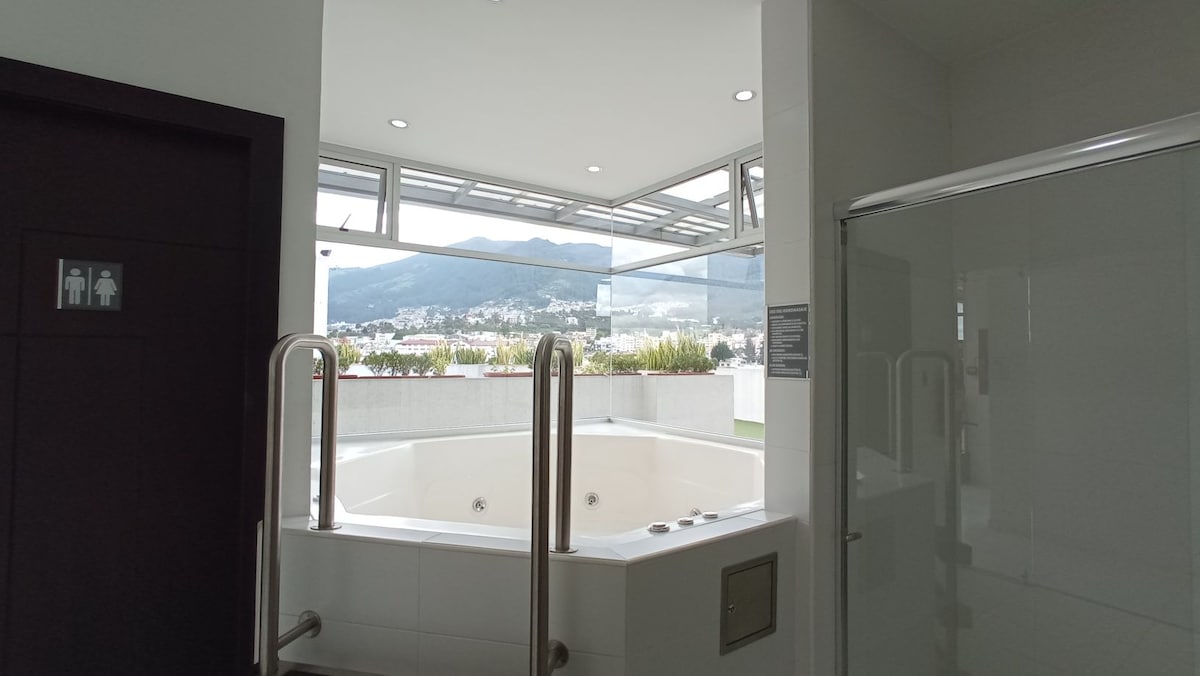 Discover Quito from this modern studio. Located on Av. República de El Salvador, just one block from La Carolina Park, in the exclusive area of the city. Surrounded by restaurants, supermarkets, and banks, everything is within reach: • 4 minutes: La Carolina Park • 11 minutes: Megamaxi • 15 minutes: Quicentro Shopping The studio offers high-speed internet and a dedicated workspace. The building features a pool, jacuzzi, sauna, steam room, gym, and 24/7 security. We speak English if needed.