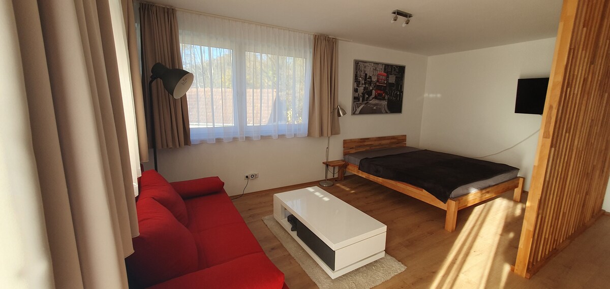 Від цього помешкання, розташованого в центрі міста, можна дістатися до всіх основних міст Південної та Східної Штирії, Граца та Словенії на автомобілі приблизно за 20 хвилин. Для маленьких гостей є безпечний ігровий майданчик з гойдалками, пісочницею, велосипедними транспортними засобами та багато іншого для безтурботного часу подалі від шуму, суєти та шуму. Велосипедисти мають прямий доступ до мережі велосипедних доріжок. Розслабляючий розслабляючий ліс відразу від дому, дозвольте вашій душі дихати.
