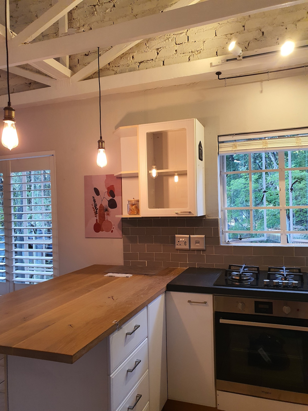Завітайте в затишний, повністю обладнаний котедж із приватним садом, абсолютно новим каміном у приміщенні та зоною для барбекю. Котедж має свіжий новий вигляд, нещодавно перефарбований та викладений плиткою, що надає йому яскраву та привабливу атмосферу. У спальні є ліжко розміру «queen size» і свіжа білизна. Залишайтеся на зв 'язку та насолоджуйтеся новим смарт-телевізором. Чудовий Wi-Fi. Кухня обладнана пральною машиною, аерофритюрницею, мікрохвильовою піччю, нутрібуллетом та газовою плитою. Є інвертор на випадок відключення електроенергії + бак Jojo.
