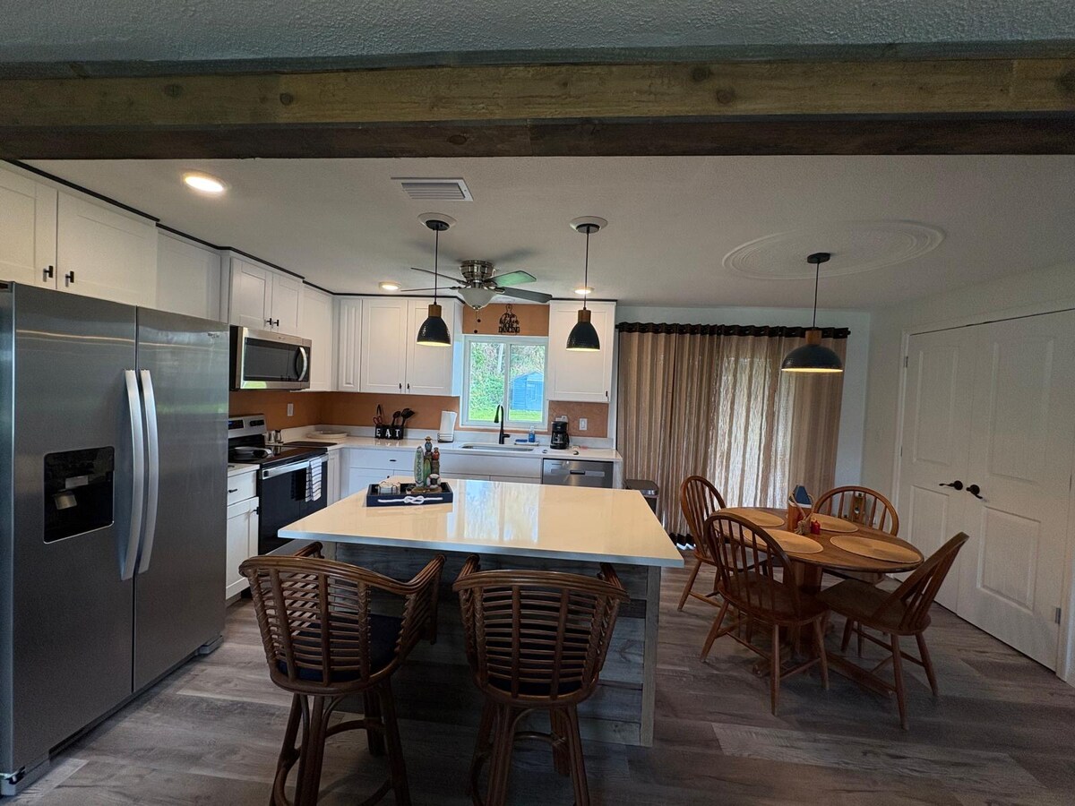 Relax with the whole family at this peaceful coastal escape. Bring your boat and enjoy fishing, swimming, and exploring the beautiful Indian River and Mosquito Lagoon! Spend your mornings watching manatees move through the canal, then hop into our kayaks to explore the beauty of the Indian River. Finish your day off by taking your boat to dinner and watching a local band play! This is the Florida Life, and we are so excited to share it with you.