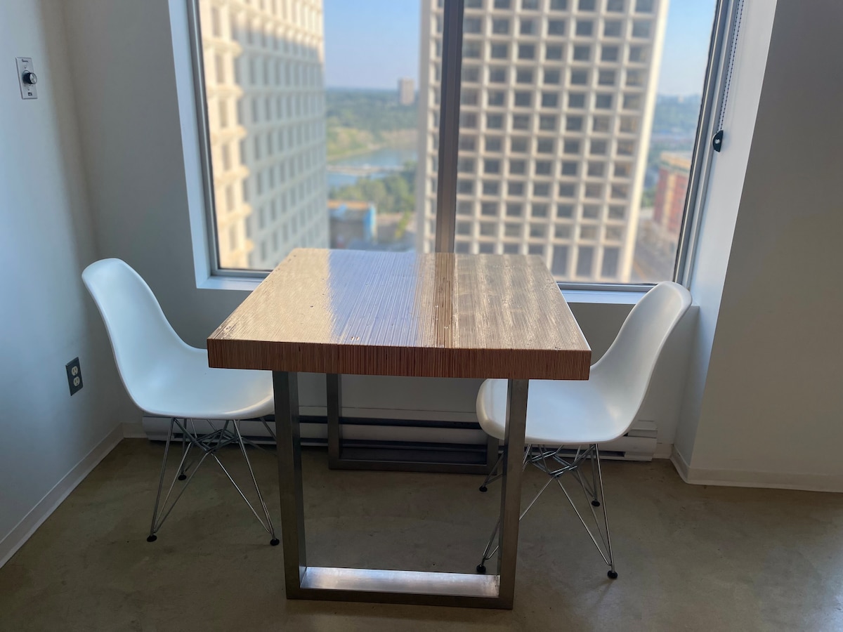 Stay downtown in a modern river valley retreat that is surrounded by natural beauty while being centrally located in Edmonton. One bedroom suite includes a kitchen, bathroom with walk-in shower and a living-room with a gas fireplace and pull out couch for additional guests. The building's main floor contains Dogpatch bistro and Bread+Butter bakery who will bring up a couple treats in the morning. Need more space? Check out River Valley Co. Suite 99 on AirBnB.