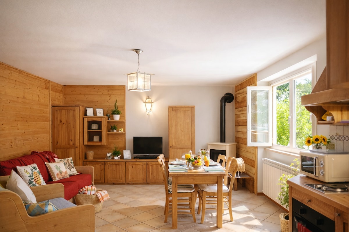 Квартира яскрава і функціональна, добре укомплектована для щотижневого перебування, розслабляюча і тиха атмосфера. З нього відкривається прекрасний краєвид на сад, долину та гори Оробіцького схилу. Ізольований достатньо, щоб забезпечити тишу та спокій, він дозволяє швидко дістатися до підлоги долини та навколишніх долин, туристичних місць або простих занурень у природу. Рекомендується для коротких перерв або відпочинку, подалі від надмірно туристичних місць.
