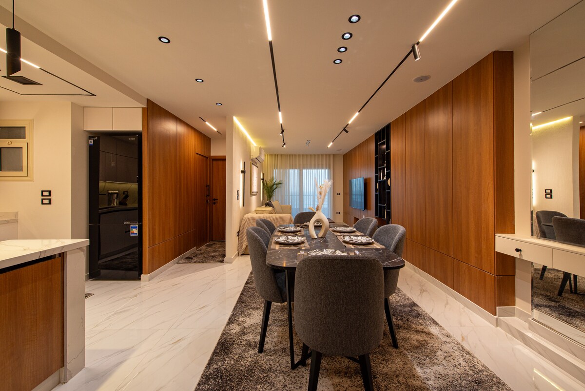 Насолодіться розкішним перебуванням у центрі Александрії в цій сучасній квартирі з видом на море в Саба-Паша, одному з найелегантніших районів міста ✔ Приголомшливий вид на море ✔ Повністю нове обладнання зі стильним сучасним декором ✔ Зручне ліжко розміру «king size» + затишна зона відпочинку ✔ Високошвидкісний Wi-Fi та смарт-телевізор ✔ Повністю обладнана кухня ✔ Кондиціонер для вашого комфорту Уся техніка та меблі абсолютно нові Ідеально підходить для сімей, бізнес-мандрівників або індивідуальних гостей, які шукають комфорт, стиль і захоплюючі краєвиди.
