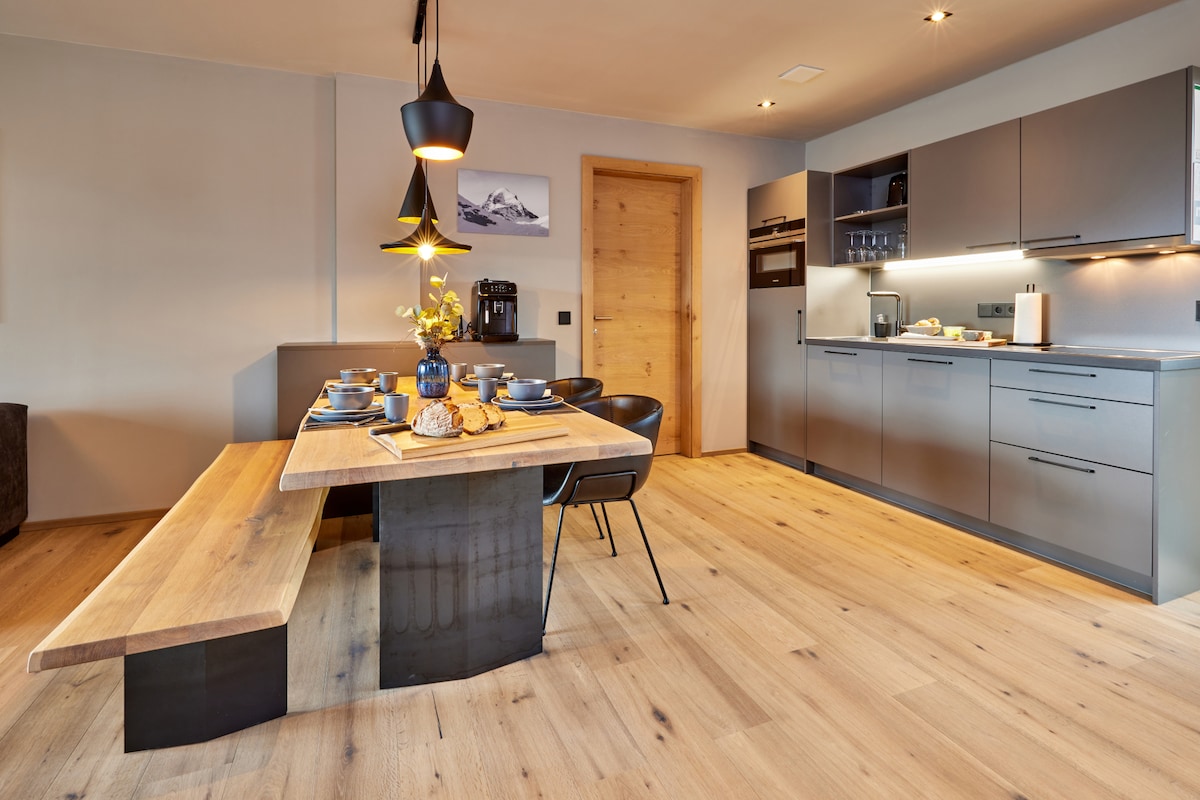 Елегантна пентхаусна квартира в сучасному альпійському стилі на плато Зеефельд. Затишна, тиха квартира на останньому поверсі дуже комфортно розрахована на 4 людини. Він має яскраву вітальню-обідню зону з сучасною повністю обладнаною кухнею, дві двомісні спальні, дві ванні кімнати, підлогове опалення, безкоштовний Wi-Fi та дуже велику приватну терасу. Звідти можна насолодитися захоплюючим видом на гори та долину Інн, як влітку, так і взимку.
