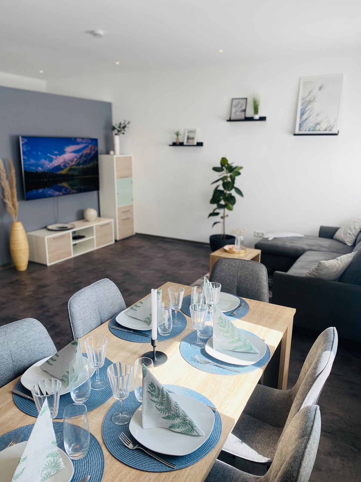 Ласкаво просимо до нашої прекрасної квартири, вона розташована в тихому місці, в районі на південний захід від Фульди. До центру Фульди, а також до розв 'язки автомагістралі Fulda Süd (A7 та A66) можна дістатися за кілька хвилин на автомобілі. З балконом і прекрасним краєвидом. Маючи 120 м², він має достатньо місця для комфорту та функціональності. Припаркуйте свій автомобіль безкоштовно та зручно перед будинком. З нетерпінням чекаю на вас як на нашого гостя