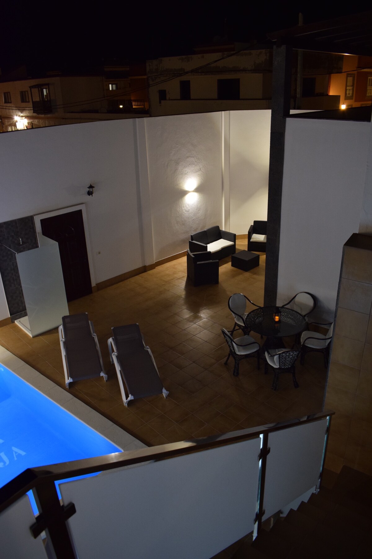 CASA GATTI, дизайнерська робота в Фуертевентурі, поєднує вишуканість і простоту. Інтер 'єр, побудований з місцевих матеріалів, відображає унікальну гармонію. З міні-басейну відкривається панорамний вид на Лансароте та приголомшливі вулкани регіону. Ця ексклюзивна резиденція, стратегічно розташована між Лахаресом і Віллаверде, забезпечує приватність і елегантність. Близькість до автентичних північних сіл і відомих місць для серфінгу робить його безпрецедентним місцем для відпочинку.