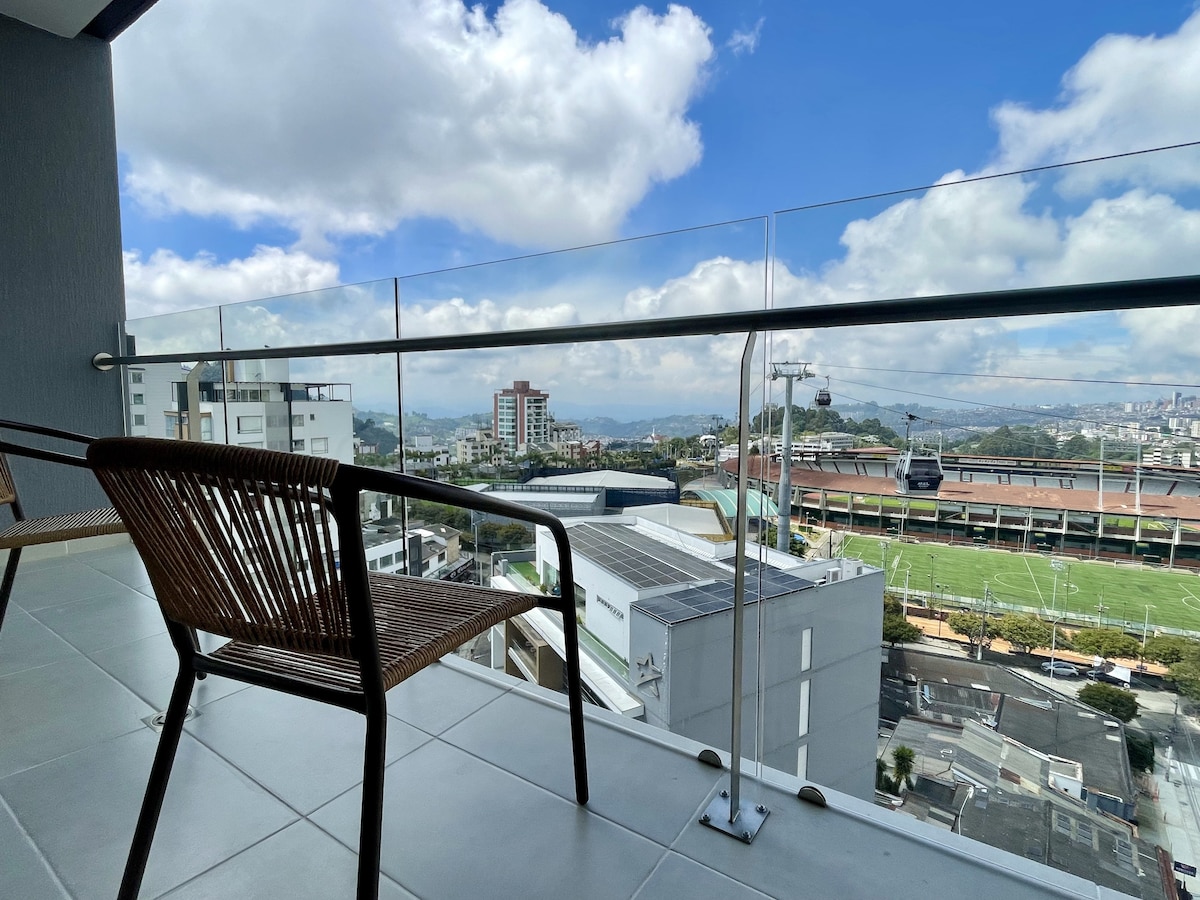 Відкрийте для себе ідеальне перебування в Манісалесі. Ця чудова квартира 1BR, яка пропонує сучасні зручності в мінімалістичному стилі. Наші апартаменти включають велику вітальню з 50-дюймовим плоским екраном та Інтернетом з 200 Мбіт/с. Крім того, ви зможете насолодитися терасою, з якої відкривається прекрасний мальовничий краєвид на місто та вулкан Невадо-дель-Руїс. Наша повністю укомплектована кухня з гранітними стільницями ідеально підходить для приготування домашньої їжі. ** BOOK NOW І ДОСВІД ПЕРЕБУВАННЯ В МАНІСАЛЕСІ **