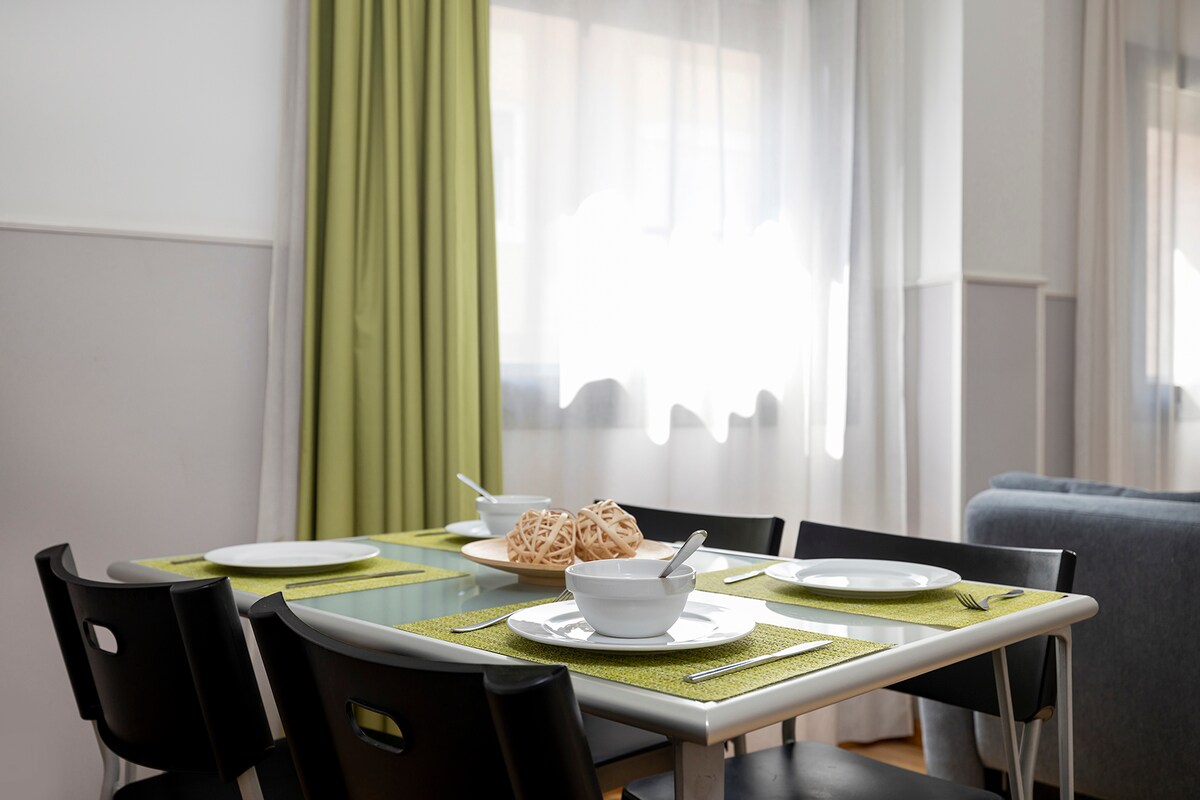 Квартири, делікатно відреставровані, мають максимальну місткість двох осіб, обладнані ліжком розміру «queen-size» (1,60м х 2,00 м) та диваном. Великі вікна пропускають природне освітлення в затишній міській обстановці. У них є вітальня-їдальня, спальня, повністю обладнана кухня та ванна кімната з душем. Кольори інтер 'єру передають свіжість, спокій, впевненість, добробут, позитивну енергію, стимулюють творчість і читання. ТУРИСТИЧНИЙ ПОДАТОК: 6,88 євро за ніч за особу, до 7 ночей (лише для дорослих).