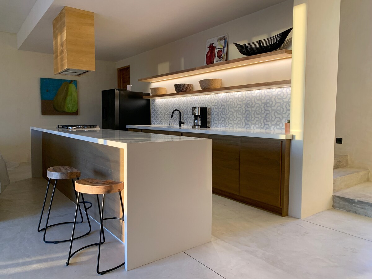 Casa Mono, стильний будинок у стилі Baja Chic в оазисному місті Тодос-Сантос. Цей унікальний будинок поєднує в собі комфорт і функціональність, щоб запропонувати вам автентичне перебування. Насолоджуйтеся просторими зонами, панорамним видом на океан і пальмовий ліс, вражаючими заходами сонця! Незалежно від того, чи ви тут, щоб працювати дистанційно, досліджувати, займатися серфінгом або просто відпочивати біля басейну, Casa Mono – ідеальне місце для відпочинку. Розташоване в Барріо В'єхо Сан-Хуан, 4 хвилини їзди до центру міста, 15 хвилин пішки. Повністю обладнана кухня та епічне барбекю на відкритому повітрі.