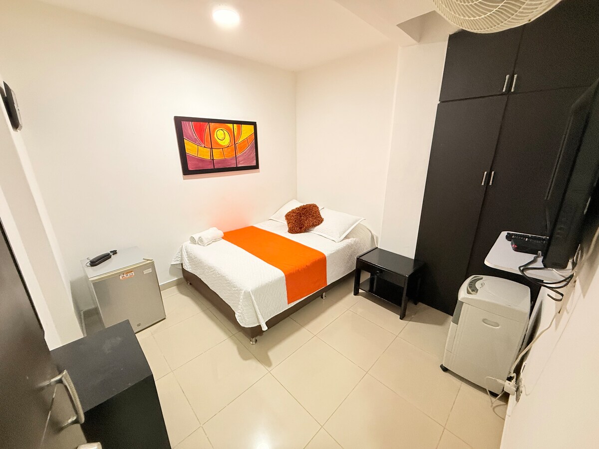 Apartahotel, 1 кімната з двоспальним ліжком, повністю незалежна, яскрава, супер вентиляція, гаряча гагуа. Житловий район, недалеко від метро та автобусної зупинки Rose. Serca Plaza Maggiore airport Olaya Herrera, airport Juan Pablo ll.
