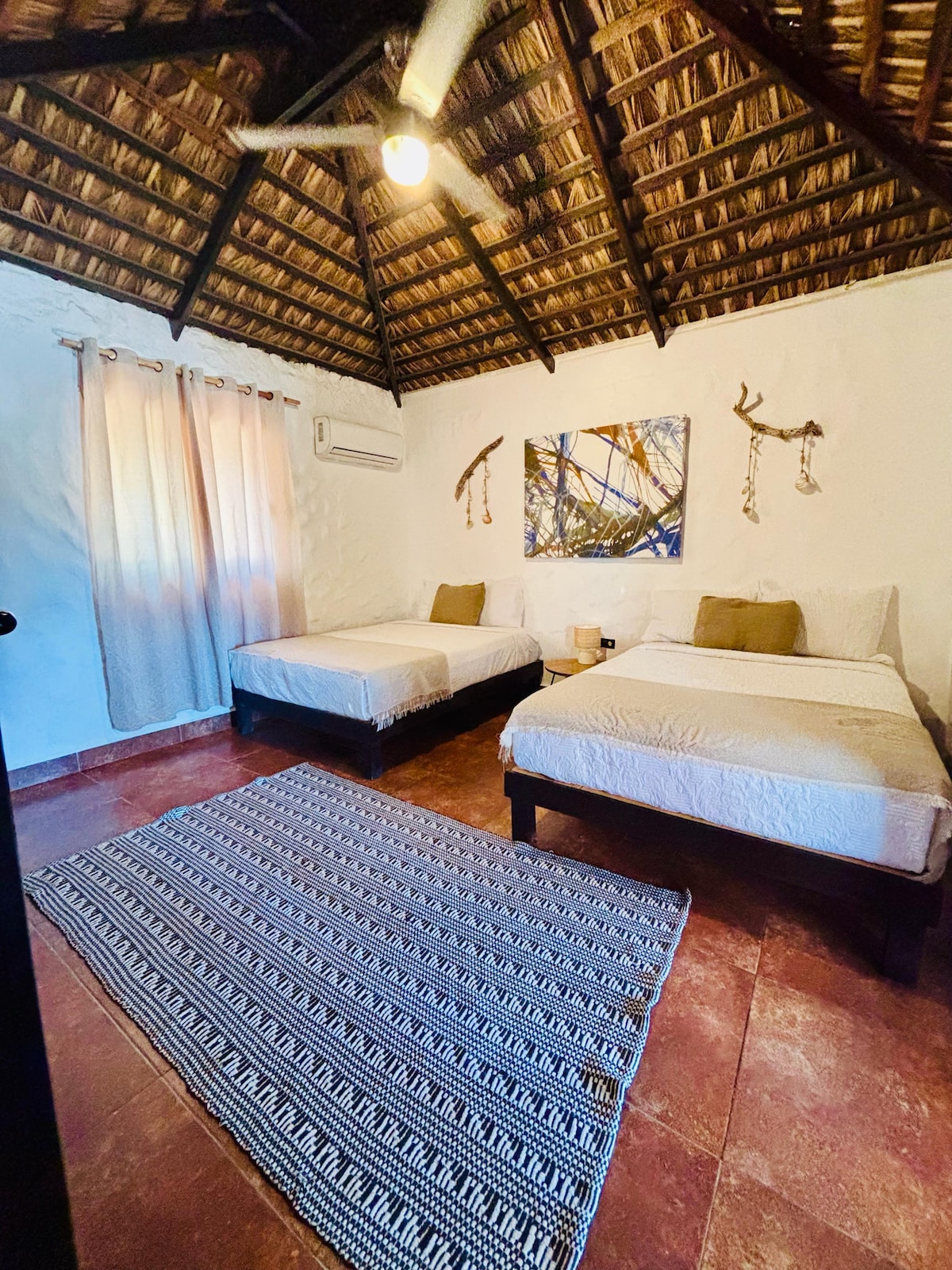 Palo Blanco es una habitación privada, luminosa y tranquila, ideal para descansar frente al mar. Cuenta con cama queen size, baño privado, aire acondicionado, frigobar, microondas y una barrita desayunador para mayor comodidad. Lo mejor: su gran ventanal con vista directa a la Isla Cerralvo y al mar. Perfecta para parejas o viajeros que buscan un espacio cómodo, fresco y con buena energía, a solo unos pasos de la playa.