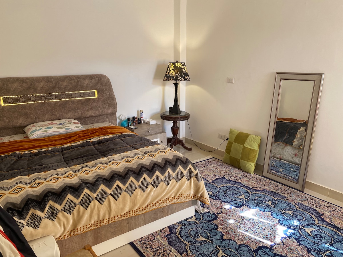 ЦІЛА КВАРТИРА з заднім садом, розташована в красивій зеленій зоні в спокійно інтегрованій громаді, що відповідає всім потребам мешканців. Кімнати нещодавно мебльовані, з кондиціонером, смарт-телевізором і всіма необхідними зручностями, дуже ЧИСТИМИ та ТИХИМИ. Квартира знаходиться в 25 хвилинах їзди від міжнародного аеропорту Каїра. Неподалік знаходяться кав 'ярні, ресторани, супермаркети та аптеки. Готель стандартної якості з будинком, як комфорт пропонується ЗА РОЗУМНОЮ ЦІНОЮ.