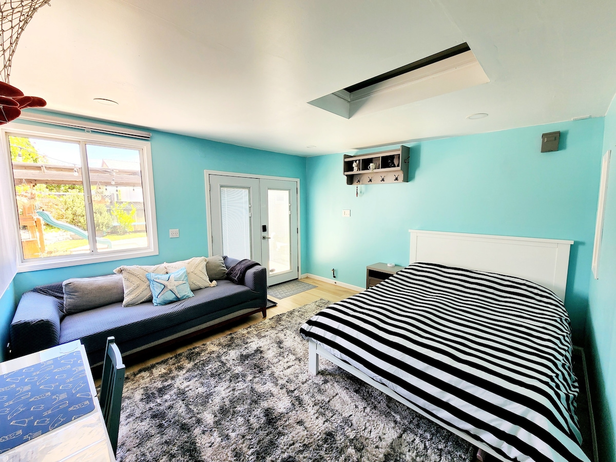 Наш будинок 2 поверхи/ми живемо нагорі в тихому районі Ричмонд/район Ель-Соб. У нас є приватна квартира на рівні вулиці з однією повною ванною кімнатою, невеликою спальнею з одним зручним ліжком Queen, телевізором, Wi-Fi, окремою вітальнею з міні-кухнею, мікрохвильовою пічю, холодильником середнього розміру, кавоваркою та односпальним ліжком для третьої особи. Окремий вхід, повна конфіденційність, легка реєстрація та виїзд! Дві автостоянки на передній частині будинку, тиха тупикова вулиця, в одному кварталі від середньої школи Де-Анза, церква...,