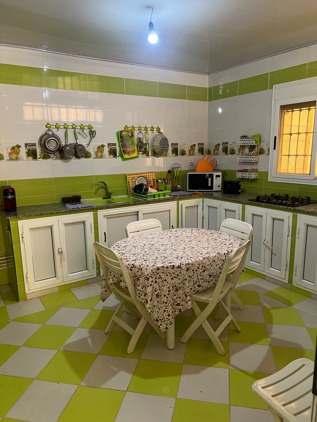 Приїжджайте та насолоджуйтеся цією прекрасною повністю облаштованою квартирою з 2 спальнями, ідеально розташованою в центрі Аннаби, в тихому та сімейному районі. Вона має 2 зручні спальні: одна з двоспальним ліжком, інша з односпальним ліжком. Затишна вітальня, обладнана лавкою. Обладнана кухня: холодильник, мікрохвильова піч, кавоварка та інше обладнання для приготування їжі. Для більших груп ми можемо надати додаткові матраци за запитом.