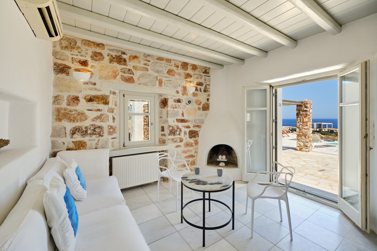 Villa Arismari is located on a serene hillside, surrounded by natural boulders, overlooking the beautiful coast of Orkos. We have a breathtaking panoramic view of the Aegean Sea and our neighboring island of Paros. We are situated between the main beach and smaller bays of Orkos. While enjoying the view that Villa Arismari offers prepare to take your most incredible selfies . Villa Arismari is a beautifully designed villa of Cycladic minimal architecture.