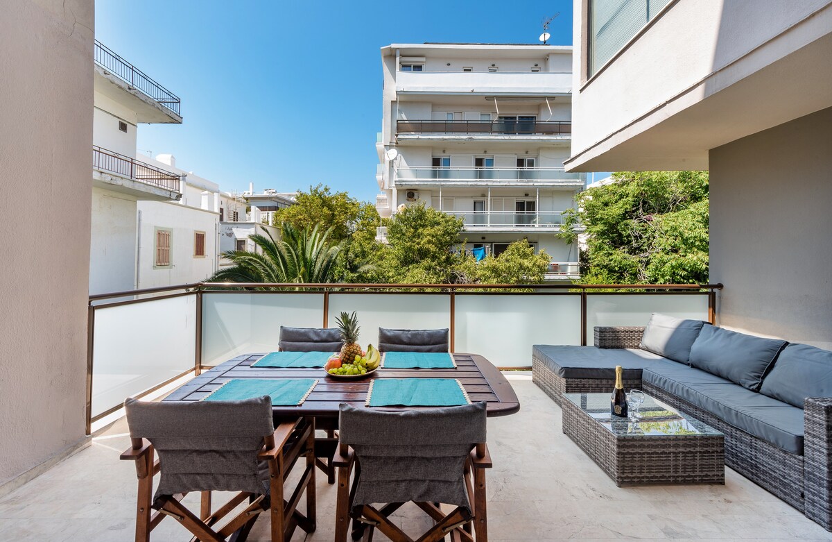 Квартира розташована за декілька кроків від пляжу Еллі, головного пляжу міста Родос, казино Родос, центру міста. Середньовічне місто, світова спадщина ЮНЕСКО із замком, пам 'ятки та музеї також знаходяться в декількох хвилинах ходьби від квартири. Це сучасна простора квартира, розташована в найбільш центральному районі Родосу, ідеально підходить для пар, соло-мандрівників і бізнес-мандрівників.