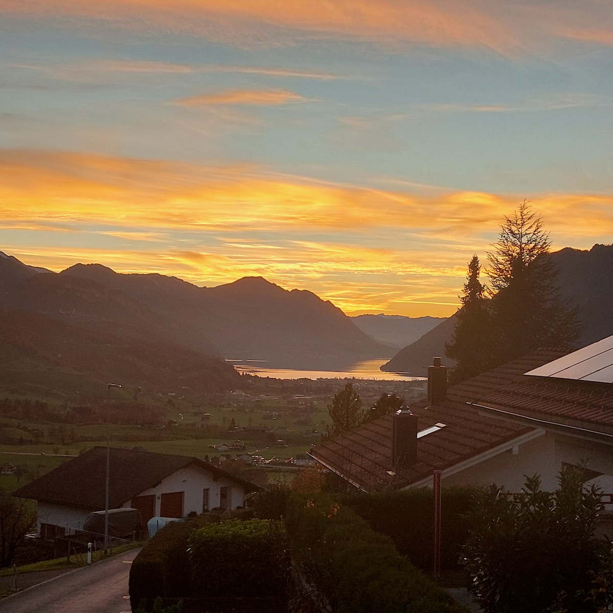 Яскрава, затишна однокімнатна студія на першому поверсі будинку на дві сім 'ї з окремим входом у дуже тихому і сонячному місці. З студії відкривається унікальний панорамний вид на захоплюючі Бернські Альпи. У студії є два односпальні ліжка (які можна зібрати разом, щоб сформувати двоспальне ліжко). Телевізор і радіо Swisscom, Wi-Fi, міні-кухня з духовкою, керамічна варильна поверхня та душ/туалет. Можливий приватний паркінг. Наша гаряча вода та електроенергія працюють від сонячної системи. Erika und René