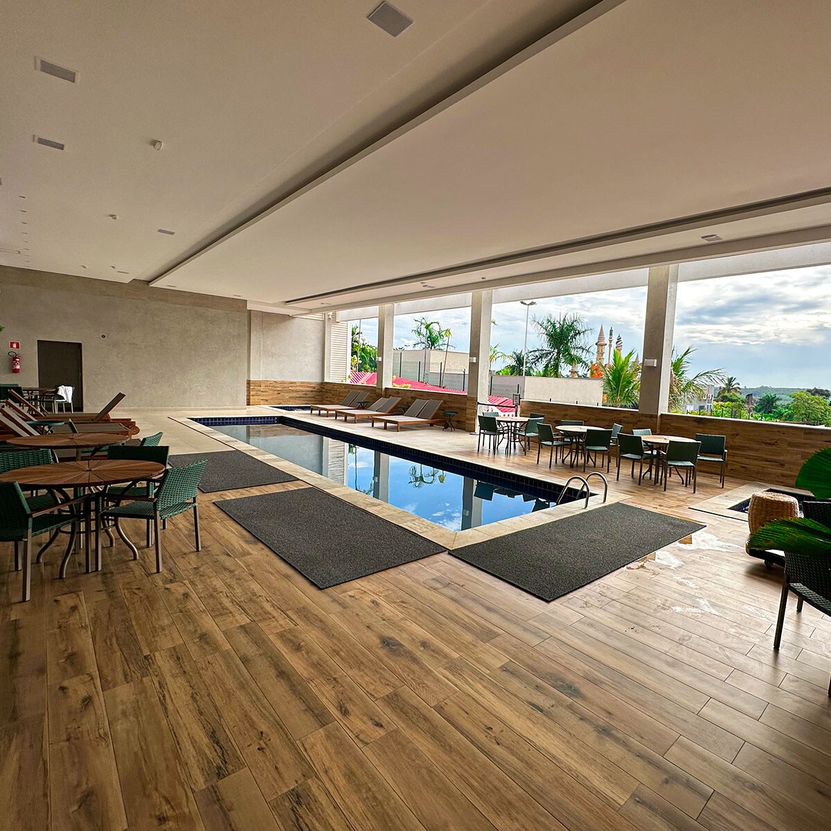 Apartamento aconchegante, confortável e bem iluminado, pensado para quem busca tranquilidade e descanso em Águas de São Pedro. Conta com quarto climatizado e cama queen, sala confortável com TV e acesso à Netflix, mini cozinha equipada e agradável varanda com jardim em frente. O condomínio oferece piscina, sauna, sala de TV/jogos, espaço fitness e lavanderia. Excelente localização, com fácil acesso a comércios, restaurantes e atrações da cidade. Estamos a 10 minutos do parque aquático Thermas.
