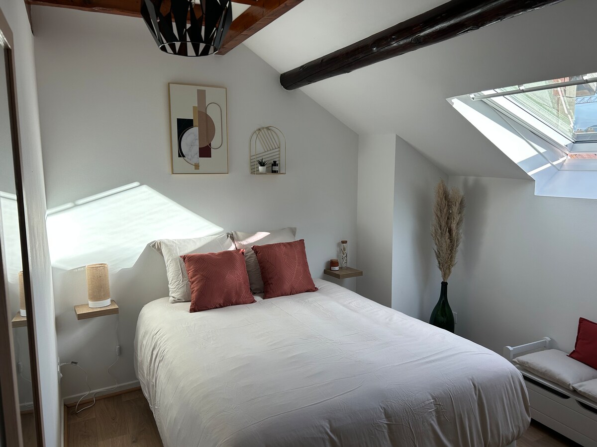 🥂 Ласкаво просимо до Еперне, столиці шампанського! 🥂 Чарівний таунхаус розташований у тихому районі, за 500 м від центру, в кінці пішохідного тупика. Насолоджуйтеся закритим садом і сонячною терасою, що ідеально підходять для відпочинку після відвідувань і дегустацій. 🏡 Чудово підходить для 2 осіб Можна розмістити 🛏️ до 4 осіб (зручний диван-ліжко) 📶 Wi-Fi, телевізор, повністю обладнана кухня Безкоштовна 🚗 парковка поблизу 🌿 Тихий притулок у центрі Еперне